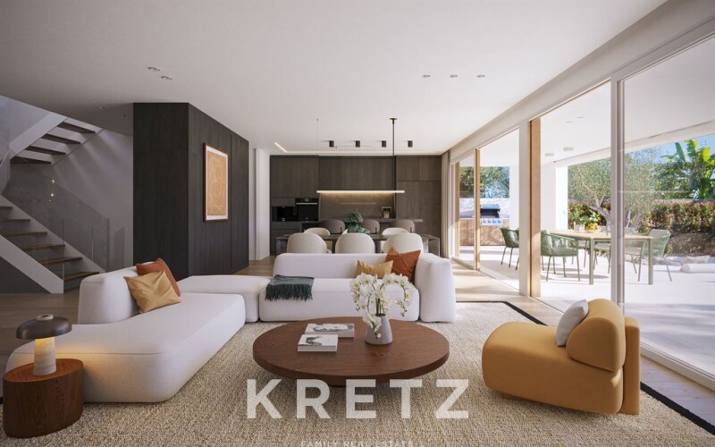 Sitges/Vallpineda, 480 m2 family villa completely renovated by an architect using top-of-the-range materials. Large entrance hall, bright living room, dining room, fitted kitchen all on one level with terrace, garden and swimming pool. 4 suites, 6 bathrooms and shower. Plenty of storage space. The complex will feature 24-hour concierge and private security services, as well as priority access to the new Club House.