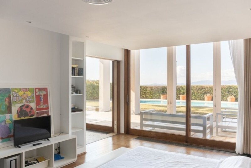 Luxurious villa in the first row to the seashore south of Palma This offer is a luxurious villa in an exceptional location in the first row to the seashore in a very sought-after premium location south of Palma. The villa is in a rather quiet location, but the center of Palma and the airport can still be reached quickly. The villa is located on a 906 m² plot in the first row to the seashore and offers a total constructed area of approx. 692 m² with a total of five bedrooms, five bathrooms, living room (with fireplace), kitchen (with cooking island), dining room and terraces. The villa has several storage rooms and a private garage with five parking spaces. In the Mediterranean outdoor area there is an approx. 64 m² swimming pool with sun terrace. Please contact us for further information and viewings. www.panorama-mallorca.de | Properties with sea views on Mallorca German | English | Français | Italiano Air conditioning, elevator, high-quality furnishings, swimming pool (approx. 64 m²), sun terrace, storage rooms, garage with 5 parking spaces.