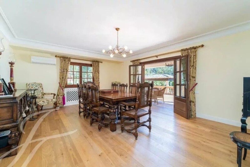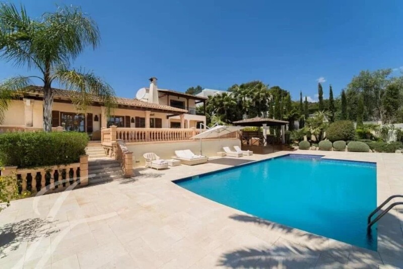 The net living area of 550 m2 plus terraces is distributed on 3 floors. Ground floor: entrance hall with staircase and guest toilet that leads to an extra-large living-dining-kitchen recently renovated ( 2021 ). On this same floor, there are also a large laundry area and a garage for two cars. Large living area with an open fireplace, official dining room with access to a large outside covered dining and chill terrace, also on the ground floor master suite with bathroom and dressing area. First floor: two large guest bedrooms with bathroom en-suite. Basement: TV corner, three guest bedrooms with two bathrooms, and a separate living room, the bedrooms have an independent entrance and direct access to the pool area. The Villa is bedded in a Mediterranean garden with fruit trees and has an extra-large outdoor pool with a separate outside bar & chill area with TV. The villa is located in the old part of Son Vida. Son Vida is a suburb of Mallorca's capital Palma, also known as the Beverly Hills of Mallorca, and is one of the most desirable and prestigious residential areas on the island. There is 24-hour security at the entrance of this luxury gated community. There are also three golf courses, two exclusive hotels, and two luxury marinas nearby: Puerto Portals and the Club Náutico de Palma. The heart of Palma's old town with its fashion boutiques and cafés invites you to linger and is only a ten-minute drive away Son Vida – the epitome of luxury lifestyle in Mallorca was first recorded in the 13th century. The castle which was mentioned is now a famous hotel. The site started as a farming area and was developed by the Vida family. Nowadays it is a gated community with several golf courses, two five-star hotels, and a vast array of stunning properties with amazing views over the surrounding mountains and the bay of Palma. It has attracted famous visitors and royals and has been the home of celebrities, and golf and architecture lovers alike. It has easy access to all amenities like cultural events, cinemas, shopping, sports, and medical centers and it is only a stone´s throw away from the capital Palma. Famous beaches and their clubs are within a short drive and the airport is just 15 minutes away which also makes it attractive to commuters. Son Vida is divided into the newer and the older parts. In the new Son Vida, you will find stunning villas with purist and modern architecture and the more classical Mediterranean-style ones around the golf courses in the older part. So there is something for every taste in the selection of exclusive property in this unique enclave.