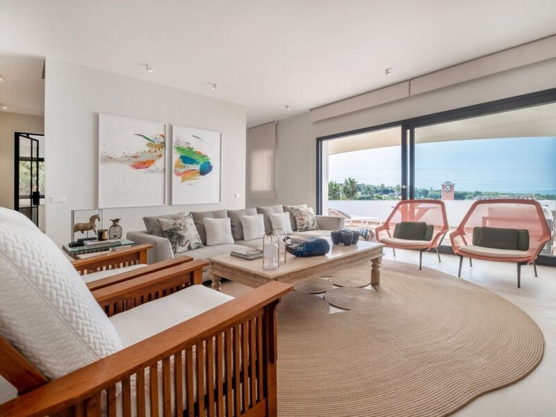Superb semi-detached townhouse with sea views, completely renovated to the highest standard bringing you the best of modern and Andalusian lifestyle. A hidden gem situated in a private and picturesque urbanization in Marbella´s Golden Mile, a short drive to the beach, restaurants and all the amenities that The Golden Mile has to offer. Furthermore you can enjoy the communal pool and gardens, tennis and paddel tennis court. Split over four levels, the property consists of 4 double bedrooms and 4 en-suite bathrooms, 2 of which are on the first floor. On the ground floor you will find the modern separate kitchen with quality appliances, dinning room and the spacious living room leading to the main terrace. Thanks to its unique position in the urbanization, this house benefits from stunning views from the ground and first floor. Additionally, the garage for 2 cars and storage room are on the lower level.