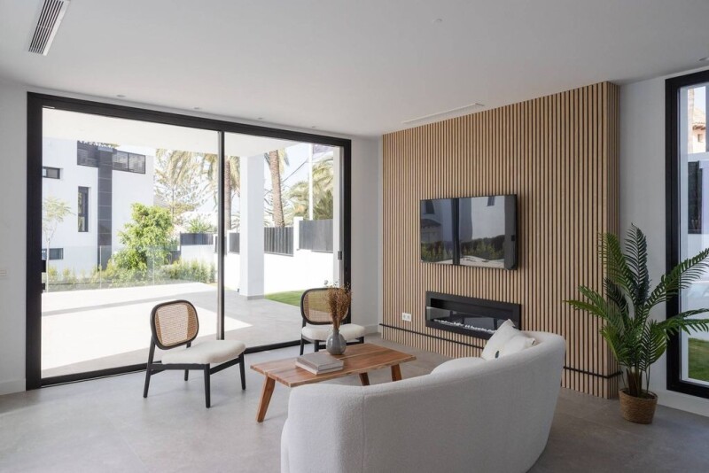 Stunning Modern Villa for sale, just 200 meters from the beach with sea iews in Marbesa, Marbella East, Elviria Situated in the highly desirable Marbesa neighborhood, this newly built five-bedroom villa offers a seamless blend of modern design and coastal charm. Set on a 670 m² plot with 408 m² of living space, the property is just steps from Marbella’s golden beaches and popular beach clubs like Sugar Bay, providing a perfect retreat in one of Marbella’s most exclusive residential areas. The villa features five beautifully designed bedrooms and five luxurious bathrooms, all crafted with high-quality finishes. The open-plan living and dining areas flow effortlessly into a fully fitted modern kitchen, ideal for entertaining. Expansive glass doors open to a landscaped garden with an impressive infinity pool, creating an ideal space for outdoor living. One of the standout features is the large rooftop terrace, offering panoramic sea views and the perfect setting for relaxing or hosting guests. Additional amenities include underfloor heating, a cinema room, games room, solar panels, security systems, and private parking for two cars. The villa is within walking distance to the beach, golf courses, shops, and restaurants, ensuring convenience alongside luxury. Whether as a primary residence or a vacation getaway, this Marbesa villa combines contemporary elegance with Marbella’s beachside lifestyle.