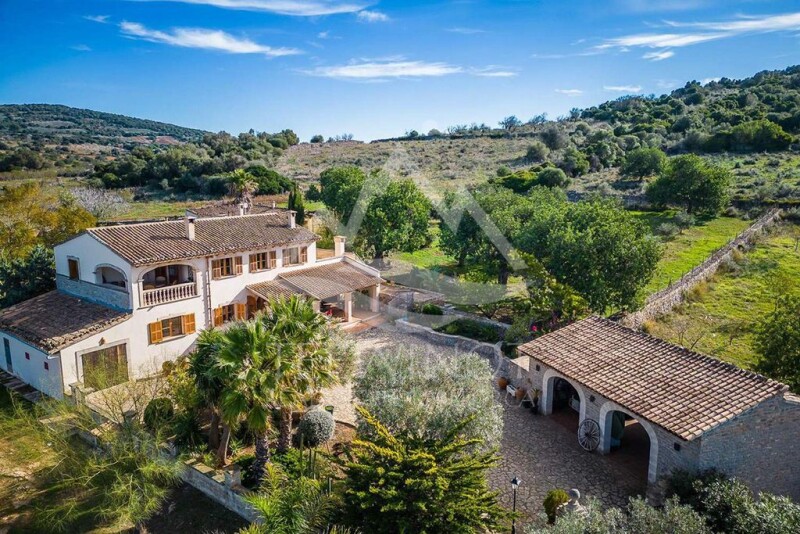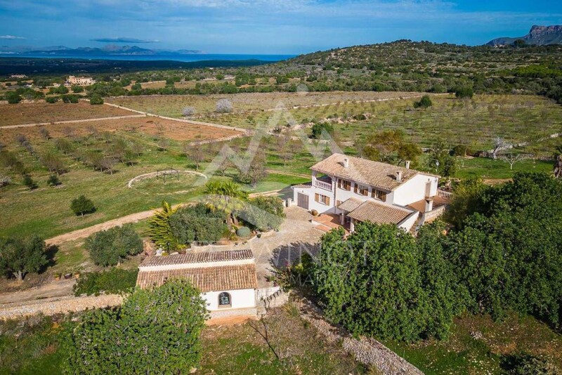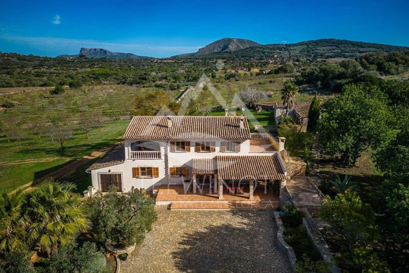 Country estate with breathtaking views and absolute privacy This fantastically located country estate is in a sublime location between the municipalities of Manacor and Colònia de Sant Pere and offers an absolutely breathtaking view of the Bay of Alcúdia and the entire Tramuntana mountain range all the way to Cap Formentor. Due to its size of around 25 hectares, it offers its owner discretion and privacy and is particularly appealing to all those who want to realize their Mallorca dream away from the general public. A completely inconspicuous dirt road branches off from a side road and after a few hundred meters leads to the entrance gate of this country estate. Only from here does the view of this true jewel, which is hidden away in the hills of the northeast of the island, reveal itself. A short drive from the entrance gate leads to a paved forecourt, from which you can already enjoy a fabulous view of the sea and the mountains. The main house is surrounded by old carob trees and spacious terraces, which, depending on the season and time of day, offer the opportunity to fully enjoy the Mediterranean climate of Mallorca. The house is entered via the south-west facing, covered main terrace and leads into a classic, stylish living area with a fireplace, which together with the directly adjoining dining area forms the heart of the house. From here you enter the spacious kitchen, which is not only comfortably furnished, but also offers enough space for preparing culinary delights. The highlight for the family and all friends and guests is undoubtedly the summer kitchen directly in front, open to the outside, with its antique wood-fired oven and sheltered seating area. This is the place to prepare Mallorcan delicacies and to end the evening with a glass of wine at any time of year. Here on the ground floor there are also 3 bedrooms and 2 bathrooms, all of which are very spacious. On the first floor there is the large library, also equipped with a cozy fireplace, which also offers a wonderful work space and a comfortable seating area that is like a gentleman's study. In front of the library there is a covered and very sheltered terrace that offers an impressive view of the land surrounding the house as well as the sea and the mountains - an extremely inspiring place whose view captivates every visitor. On this floor there is the master bedroom with dressing room and a large, separate bathroom. A utility room and another small terrace complete the impressive first floor. In the main house itself there are other rooms that are currently used to store tools and irrigation technology. In addition, there are also 2 large outbuildings that are currently used for technical purposes, but which could easily be used for other purposes, e.g. as a guest house. The property is run as an agricultural business and is home to around 1,700 almond trees as well as carob, fig and olive trees. The company is IGP certified for the production of almonds from Mallorca, which opens up access to EU subsidies to be able to create additional cultivation areas. All trees are irrigated fully automatically and get water from the company's own, tested deep well. 7 hectares of the 25 hectares were recently demarcated, on which a completely separate house with a volume of up to 900 m³ can be built. The current main house is located on the remaining 18 hectares, so that the property also offers space for further design options. Anyone who wants to call a classic and very stylish Mallorcan finca their own and places great value on their privacy will find one of the island's rare jewels for sale here, which offers its future owner plenty of freedom to realize their own dreams, including their own vineyard. Additional details Living and usable area ground floor: 207 m² Living and usable area 1st floor: 110 m² Porche ground floor: 31 m² Porche 1st floor: 20 m² Usable area outbuilding: 186 m² Year of construction: before 1956 Extension and renovation: 2002.