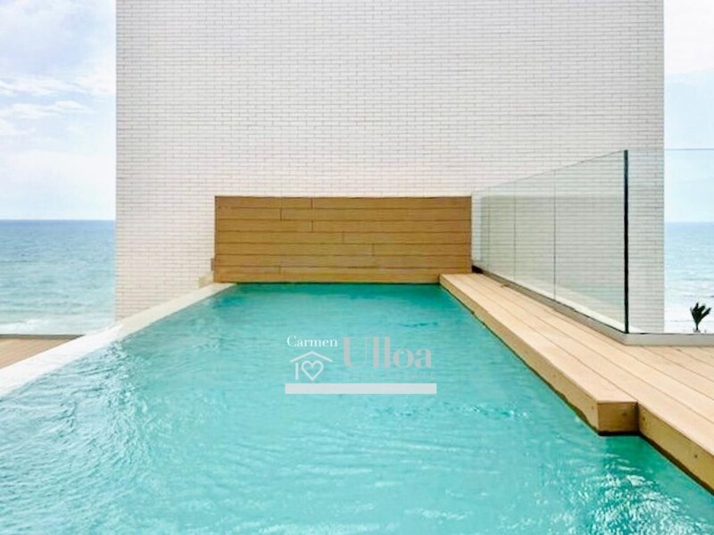 BEAUTIFUL DUPLEX PENTHOUSE ON THE FRONT LINE OF MUCHAVISTA BEACH~~Discover this magnificent opportunity to live on the beachfront and enjoy panoramic and unbeatable views of San Juan Beach!~~The 185m² house is distributed over 2 floors, 3 bedrooms and a spectacular terrace plus a 59m² solarium with its own 18.35m² pool.~~Upon entering the house you will have a spacious living room with large windows with a kitchen integrated into the space and a beautiful functional island plus a gallery, ideal for a laundry area.~On this floor you will have access to the terrace from your living room. This large terrace where you can create different environments.~Access to the private pool and solarium via stairs from the terrace. The views from here are incredible to San Juan Beach.~A guest toilet completes this first floor.~~On the second floor, 3 bedrooms with fitted wardrobes from floor to ceiling and lined. The master bedroom, double and bathroom en suite with views. 2 more double bedrooms and 1 full bathroom complete this floor.~~Possibility to purchase a garage and storage room separately~~Extras:~Indirect LED lighting in the main rooms.~Air conditioning with Airzone system.~Motorized blinds.~Swimming pool with motorized protective awning and cleaning robot.~~The residential complex has beautiful common areas such as an infinity pool, garden areas, full gym.~~Key distances:~Beach: 50 meters.~Alicante center: 13 km.~Alicante airport: 28 km.~~Your dream of living by the sea is just one step away from becoming a reality.~~Contact us now for more information and book your visit without obligation!~~Legal notice: The information provided is merely informative and is not legally binding, and may contain some errors.~~Professional Real Estate Agent number 692 Registry of Real Estate Agents of the Valencian Community 1862.