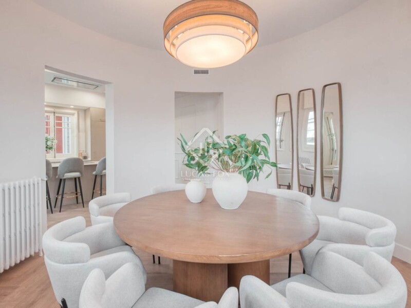 Exclusive penthouse next to the Teatro Real – Elegance and light in the heart of Madrid Located on the sixth floor of a classic building , this spectacular penthouse stands out for its luminosity and sophisticated design. Located in one of the most emblematic areas of the city, just a few meters from the Teatro Real, it combines historical charm with modern comfort. The property has two bedrooms, both with en-suite bathroom , ensuring privacy and comfort. The day area offers a spacious and bright living room , an open-plan designer kitchen and an exclusive dining room located in the tower of the building, with privileged views and a unique atmosphere. In addition, it has a guest toilet and a concierge service. Its unbeatable location in the Palacio neighbourhood allows you to enjoy the best cultural attractions in Madrid, with excellent communication and all amenities within walking distance. A unique opportunity to live in style in the centre of the capital.