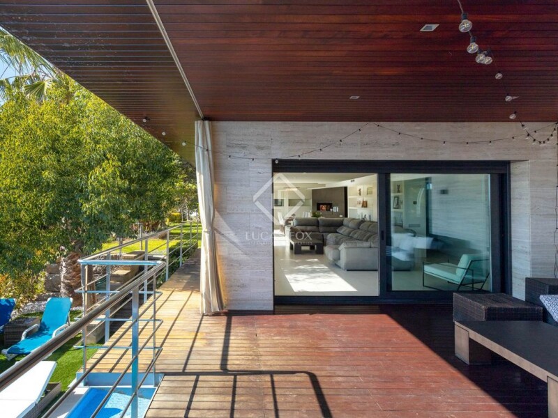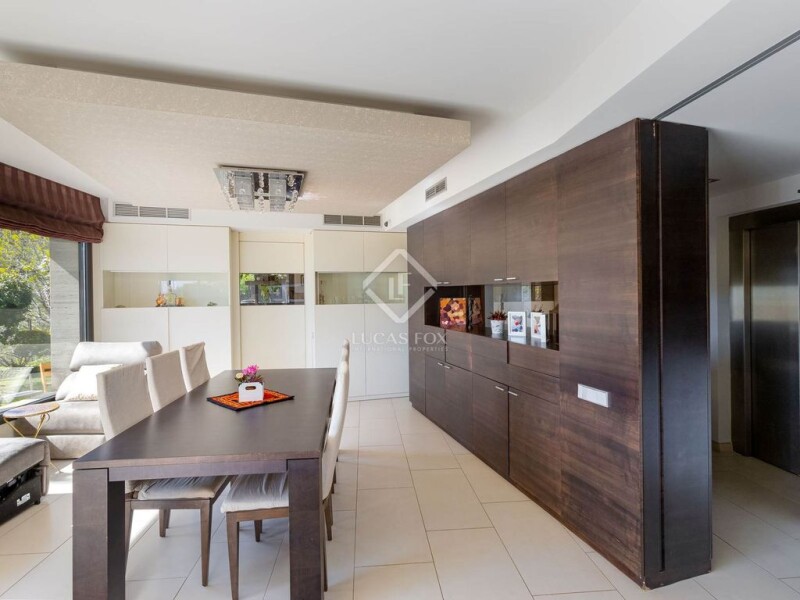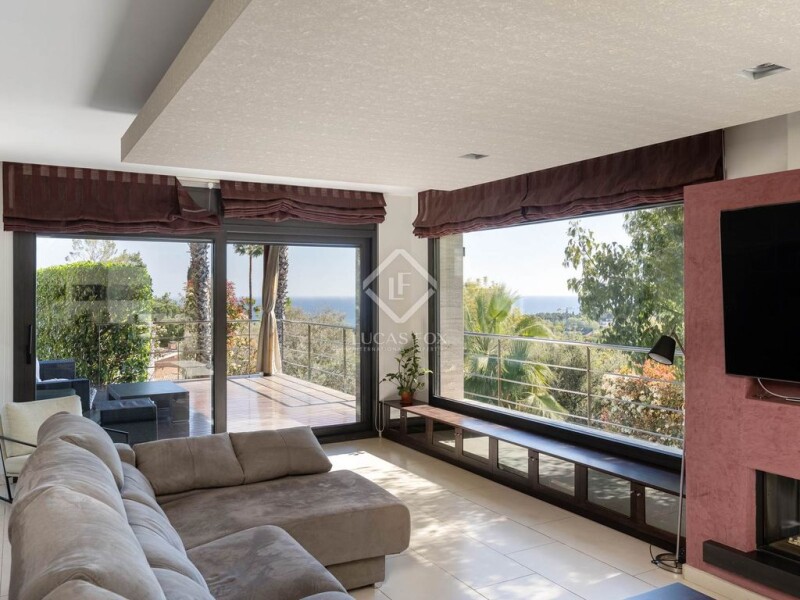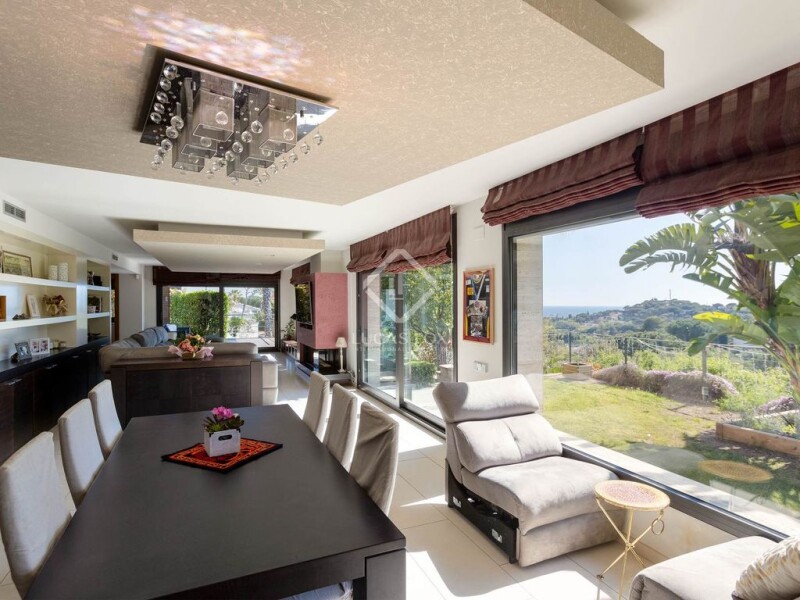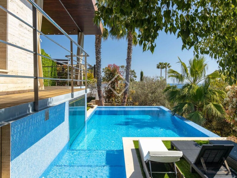 This luxury property for sale in Maresme is located near the centre of Premià de Dalt, about 25 minutes from Barcelona. Thanks to its exclusive location, it is close to international schools, golf courses and the Premià de Mar marina. The main entrance, which features fantastic ceramic and walnut wood floors, includes a 70 m² living room with a gas fireplace . From here, we can access a large garden with a pool, a wonderful designer dining room and a 35 m² kitchen with a central island and luxury appliances (Gaggenau). On the same floor there is also a guest bedroom , a toilet and a service area with a bedroom and a bathroom with a shower. A lift takes us to the second floor, where we find two bedrooms with private bathroom. One of them is the master bedroom, which has a dressing room, jacuzzi, shower and a terrace with stunning sea views. In addition, on this second floor there are two double bedrooms, a bathroom and a utility room with a terrace. The ground floor has a gym with views of the pool and six parking spaces. In short, this property offers magnificent luxury details, such as an elevator, air conditioning, underfloor heating, photovoltaic panels, surround sound in all rooms, automatic blinds and stunning views of the Mediterranean Sea and the Barcelona coast.