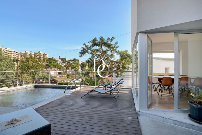 Modern house with 5 bedrooms, 4 bathrooms and pool This modern three-story house is characterized by its contemporary design and spacious spaces. With a total of 5 bedrooms and 4 full bathrooms, it offers everything you need for comfortable living. On the ground floor we find a beautiful living room with fireplace and access to the pool, an open area with windows from floor to ceiling, which allows the entry of natural light, ideal for relaxing or receiving visitors, a kitchen with a central island with exit to a large terrace perfect for meetings or moments of relaxation. From the living room we access the first floor, which is made up of 4 double bedrooms with large windows and 2 full bathrooms. The upper floor houses a spacious master bedroom, which includes a sitting room and a full bathroom with a walk-in closet. This main room is completed with a private terrace with stunning sea views, becoming a space of refuge and privacy. On the ground floor we find an additional space that can be used as an office, games room or entertainment area. The house has parking for 2-3 cars.