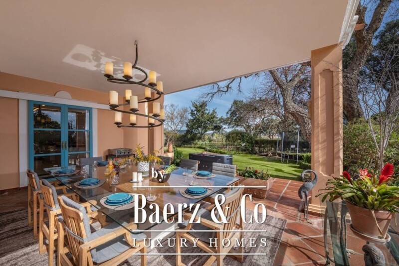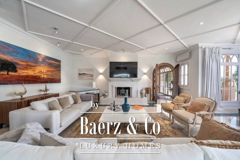 This magnificent property, situated on a spacious 4578m2 plot in the prestigious San Roque Club, is now available for purchase. With its timeless and elegant design, this house offers a truly luxurious living experience. The location is nothing short of breathtaking, as it is nestled between two fairways of the renowned San Roque Old Course, providing stunning views of the sea, the club house, and the majestic Sierra Bermeja mountains in the distance. Spanning an impressive 1215m2, the property boasts a well-thought-out layout. On the ground floor, you will find the main living area, along with a master suite featuring a generous dressing area, a spacious bedroom, and a large bathroom. The living room, complete with an inviting open fireplace, seamlessly flows into both an indoor dining room and a covered outdoor dining area, perfect for entertaining guests. The fully-equipped kitchen is a chef's dream, while staff quarters provide convenient accommodation for onsite help. Ascending to the upper floor, you can reach it either via a staircase from the living room or through the grand main staircase from the entrance hall. Here, a gallery/snug room awaits, complete with an office space, a cozy fireplace, and access to an open terrace. This terrace offers panoramic views of the golf course, the sparkling sea, and beyond – a truly enchanting sight. Additionally, three guest suites, each with their own terrace, provide utmost comfort and privacy for visiting family and friends. The architecture and interior decoration of this house are truly impressive, exuding timeless sophistication. The meticulously landscaped gardens perfectly complement the house, featuring a pool house with its gym, a heated swimming pool, and a putting green.