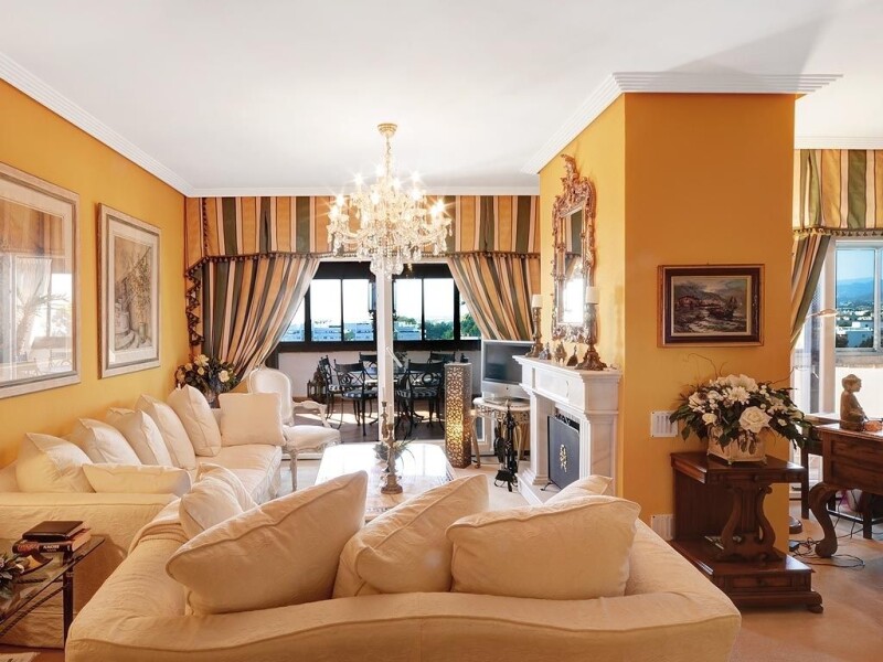 This elegant three bedroom penthouse is located in a residential complex with reception and 24-hour security and is surrounded by beautiful tropical gardens, a large pool area and a tennis court. The beach is only 300 m away and the center of Puerto Banus with its wide selection of restaurants, bars and shops is a five minute walk away.The oriented penthouse southwest is available bright and top quality rooms. It has a light and airy living room with stylish fireplace, 3 bedrooms, 2 bathrooms, one en-suite and 3 terraces. The main terrace is partly covered and offers year-round Mediterranean outdoor environment with spectacular views of the sea, Gibraltar and the coast africana.El master bedroom has fitted wardrobes and an en-suite with jacuzzi and also leads to the main terrace. The other bedrooms also have fitted wardrobes and share a bathroom with shower and a small terrace.The exclusive furniture, as well as an action / participation La Quinta Family Share may be obtained optionally.