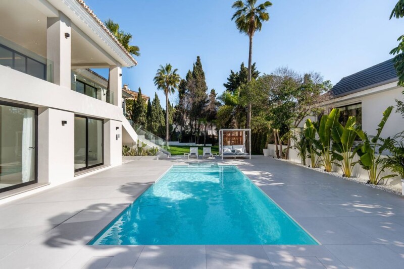 Stunning beachside Villa – a blend of modern comfort & timeless elegance in Marbesa, Marbella East Nestled in the prestigious Marbesa neighborhood, this four-bedroom, four-bathroom villa is a masterpiece of contemporary Andalusian design, offering an elevated lifestyle just steps from the beach. Spanning 405 m² on an 800 m² plot, this south-east facing residence is designed for year-round comfort, combining cutting-edge technology with elegant finishes to create an exceptional living experience in Marbella East. Recently completely rebuilt, the villa features advanced thermal insulation and high-tech AAC concrete blocks, ensuring soundproofing and energy efficiency for a peaceful, climate-controlled environment. The multi-zone radiant floor heating enhances comfort throughout the home, while whitewashed walls, elegant arches, and refined finishes capture the charm of classic Andalusian architecture with a modern twist. The open-plan living and dining area seamlessly connects to the outdoor spaces, where a heated saltwater swimming pool, lush private garden, and multi-zone indoor & outdoor sound system set the stage for both relaxation and entertainment. The villa comes fully furnished, with every detail carefully selected to complement its sophisticated aesthetic—offering a true turnkey experience. Situated in one of Marbella’s most desirable beachside communities, Villa Vista offers the perfect balance of tranquility and convenience. With golden sandy beaches, charming chiringuitos, and coastal walking paths just moments away, every day feels like a holiday. Just 30 minutes from Málaga Airport, this home is an ideal retreat or investment in a high-demand location.