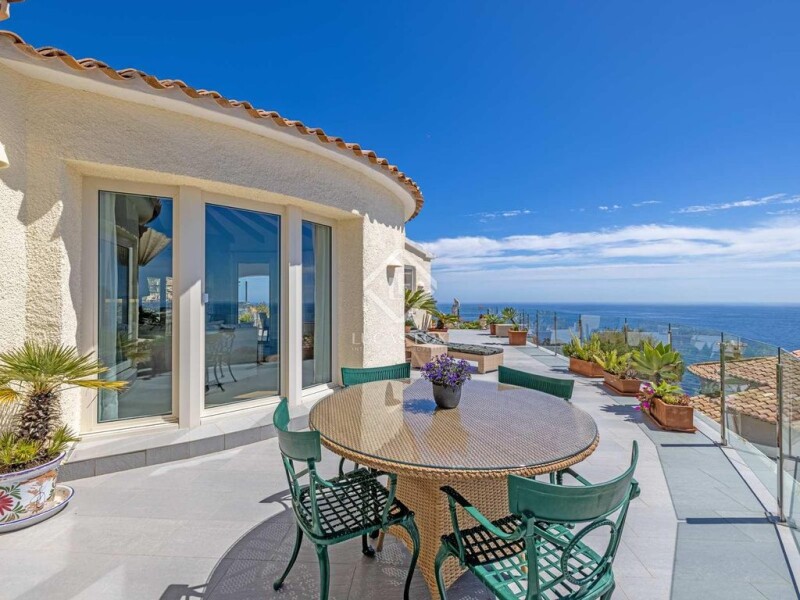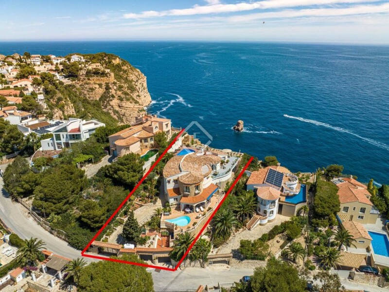 An exceptionally well presented property, in an unrivalled location, right on the sea front with spectacular, panoramic, frontline views across the Mediterranean Sea and out towards Ibiza and the lighthouse at Cabo de la Nao. The property enjoys a sunny aspect, facing east and south-east. The property can be accessed via two garages, or a sweeping driveway with off-road parking. The house itself is distributed across two independent homes: The main house offers: an entrance hall which leads to the fully-equipped kitchen, a vast day area, with a dining room, living room, office area complete with feature fireplace and all of which benefits from large windows which look out across the terraces towards the Mediterranean Sea. There is a comfortable, breezy covered terrace with built-in outdoor kitchen which offers panoramic views, a raised swimming pool, with sun deck and outdoor shower, plus a wrap-around uncovered terrace which leads back to the kitchen and breakfast area. A hallway from the entrance hall leads to the night accommodation, alongside a separate laundry room. There are two spacious double bedrooms, a modern family bathroom, and the vast main suite with an en-suite shower room and huge bedroom area with built-in wardrobes and Juliet balconies with stunning sea views. The apartment below is completely independent, and comprises: a private, south-facing terrace with a small dip pool, covered terrace area, a modern, open-plan living/dining/kitchen with fully-equipped kitchen, two double bedrooms and two bathrooms. Also on this level is a huge under build for storage and a separate laundry room. Practical extras include: double-glazed, tilt-and-turn windows, gas central heating throughout, Swiss parquet flooring in the upper level, two separate garages (one with access to the lower apartment), plenty of storage, large electric entrance gates. This would make a superb investment property, or holiday residence for two families. Please contact us for further information and to arrange a viewing.