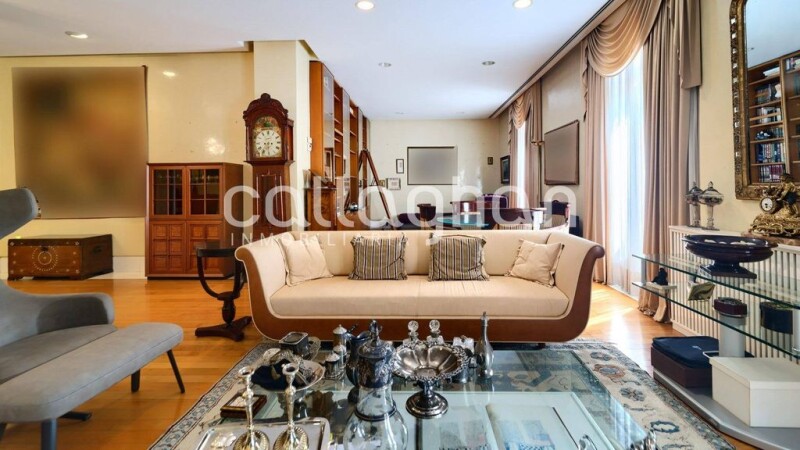 This property on Gran Vía Marqués del Túria is truly exceptional, both for its privileged location and its architectural features and amenities. Located in an emblematic building of Valencian modernism, the Casa Ortega, this property combines history and contemporary luxury.~With a built surface area of over 400m2, this residence offers a generous and well-distributed space, with five bedrooms, including a master suite of approximately 40m2, and six bathrooms. In addition, it boasts a terrace offering stunning views of the city.~The inclusion of two parking spaces in the same building is an additional luxury in an area where parking can be scarce. Fine materials and exclusive construction features, such as magnificent ceiling heights, balconies to the façade and modern conveniences such as a sauna, ensure a lifestyle of luxury and comfort.~In short, this property represents a unique opportunity for those seeking the best in terms of location, architecture and amenities in the charming city of Valencia.~~Translated with DeepL.com (free version).