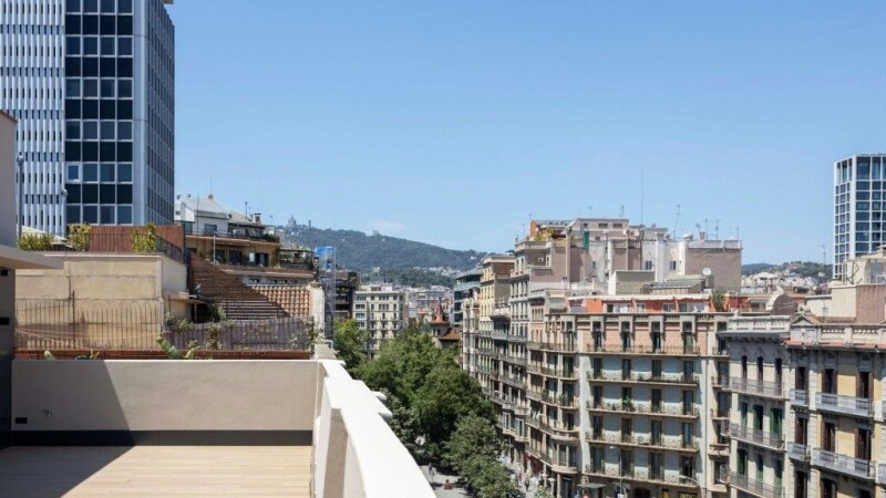 Berkshire Hathaway HomeServices Barcelona, a consultancy specializing in the marketing of exclusive properties in the best areas of Barcelona, offers you this spectacular luxury penthouse, located in the heart of Barcelona on the iconic Rambla Catalunya, offers an unparalleled living experience. The new building combines elegance and modernity, reflecting the best of contemporary architecture. Upon entering this home, you are greeted by a spacious living room with an open kitchen, a gem of modern design, perfect for those who enjoy cooking and sharing with family and friends. It is equipped with state-of-the-art appliances and premium finishes that make this space both functional and attractive. The living room, with its natural wood parquet flooring, is a cozy and bright retreat thanks to the large windows that allow plenty of natural light to flood in. This space flows harmoniously onto the 25 m² terrace, a private outdoor corner where you can enjoy moments of relaxation, with impressive views of the city and the vibrant life of the Rambla Catalunya. This stunning penthouse consists of two spacious and bright bedrooms, each equipped with built-in wardrobes that maximize space and organization. The two elegantly designed bathrooms feature high-quality finishes that guarantee comfort and style. Attention to detail and the use of high-quality materials are reflected in every corner of this penthouse, offering a sophisticated and comfortable living environment. The combination of luxury and functionality makes this residence a unique opportunity to enjoy the best of Barcelona from a privileged location.