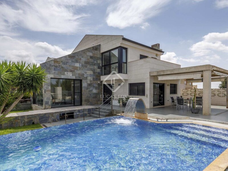 Lucas Fox presents this comfortable house of excellent construction and with large spaces, on a charming 500 m² plot . The property has a good location due to its proximity to all the amenities necessary for daily life, such as supermarkets, shops and metro station, as well as its proximity to Valencia, just 20 kilometers away. The property is distributed over two floors plus the lower ground floor. Several of the bedrooms have their own bathroom. On the main floor , of about 125 m², there is a nice entrance hall. On this floor, there is a living-dining room with views of the pool and garden, a bedroom that can be used as an study and a full bathroom . It is worth highlighting the spacious kitchen with island, dining room and laundry area with access to a large exterior terrace in front of the pool. On this same floor, we find the main bedroom, with a private bathroom and dressing room. The upper floor occupies an area of 75 m² and is made up of two double bedrooms with built-in wardrobes, a full bathroom and a private terrace in both. The lower ground floor has direct access to the pool, it is large and we find several rooms. It is worth highlighting a large living room where we could also install a kitchen, since everything is ready to run it, as well as a full bathroom , a storage area, the technical room and the garage, with capacity for several vehicles. In the exterior area there is a well-kept garden and a magnificent chlorination access infinity pool with a waterfall. The house has great details: limestone and slate façade, high quality porcelain floor , air conditioning and heating, mosquito nets, exterior and interior alarm and self-locking blinds. We invite you to arrange a personalized visit to learn more about this excellent property.