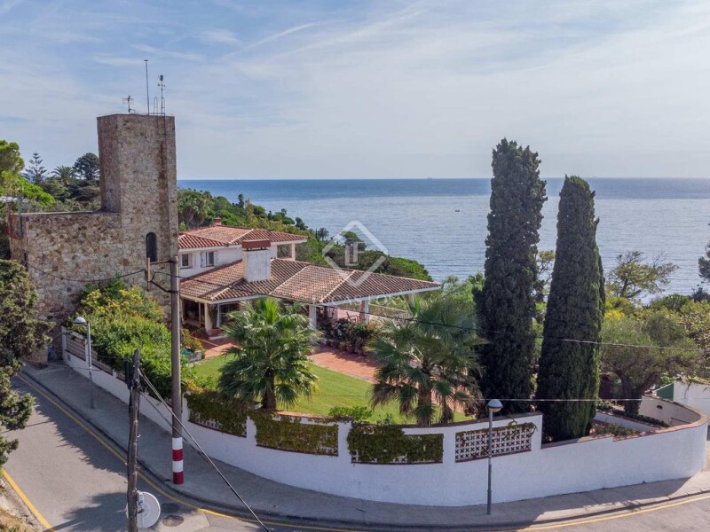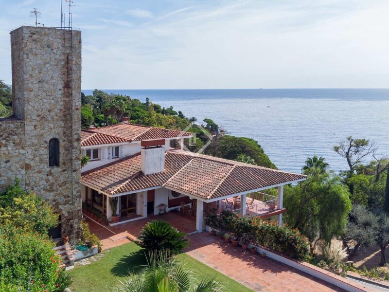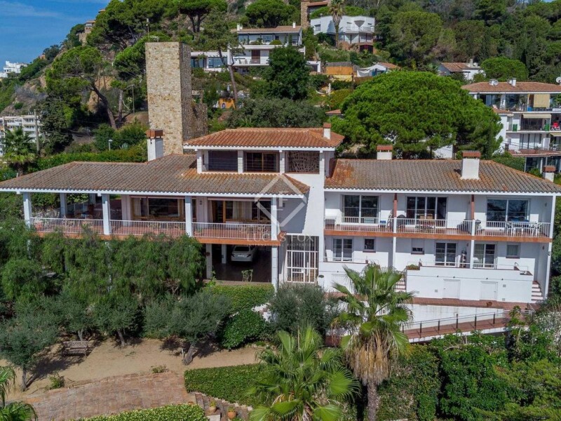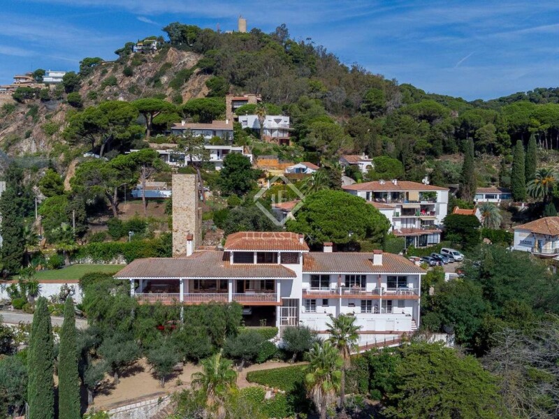 Majestic villa in a privileged location in Blanes, facing the sea and the famous Marimurtra botanical garden, surrounded by green areas, with spectacular views of the sea and the port of Blanes. In addition, it is within walking distance of the city and the port of Blanes. The house enjoys sun throughout the day, thanks to its orientation, with a large façade. It has a garden on three levels with approximately 2,500 m², with fruit trees, olive trees and other vegetation typical of the Mediterranean area. The house consists of a main house, plus three other semi-detached houses practically identical to each other, two parking areas, an old water tower and several entrances. The main house is a large 450 m² villa that is distributed on the ground floor, first floor and semi-basement. The ground floor has a large living-dining room, a living room with a fireplace and access to a large 50 m² terrace that surrounds the corner of the house and offers sea views and access to the garden. It also has a kitchen and a large hall. The upper floor has two bedrooms, a bathroom and a 20 m² terrace. By a staircase, we go down to the semi-basement floor that is used as a garage. The three little houses that are attached to the main house are practically the same and each have independent entrances. They are distributed in an entrance, a kitchen, a living room with a fireplace, a 5 m² terrace with sea views and in the lower part, the bedrooms. The plot has a porch with four parking spaces and under the main house there is a semi-open garage with capacity for another five cars. The house has a stone tower, with a storage room, a laundry room and a bathroom with a shower under the tower. This house has excellent attractions such as its location, orientation and dimensions of the land. Although it is in a good state of conservation, it requires updating and improvement work to increase the potential of the farm. Currently it does not have a pool, but there is space and the option to do so. Get in touch for more information.