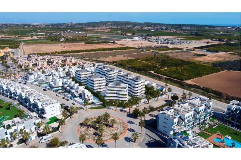 Discover your dream home with us! We present modern apartments in El Raso, a residential area of Guardamar del Segura on the Costa Blanca South. The project presents apartments with 2 or 3 bedrooms and 2 bathrooms and are available in different models: ground floor models with terrace and private garden; mid-floor models with large terraces; and penthouses with a private solarium. All models have an open plan living area, combining the kitchen, dining area and lounge, with large windows that open onto a covered terrace. The master bedroom has an en-suite bathroom and opens onto the terrace. Bright apartments that benefit from a maximum of natural light and the fantastic Mediterranean climate. This is a private complex with everything needed to enjoy a fantastic holiday, or for year 'round living. The community facilities include a large community pool with jacuzzi, spa area, mini golf, rest areas with sun loungers and parasols, garden areas, co-working space, a " coffee-corner”, high-speed internet, Amazon mailboxes, and charging stations for electric cars. The apartments will be constructed with optimal thermal and acoustic insulation, thereby receiving an "A" Energy Certification, as well as including a Smart Home system. El Raso is strategically situated between the towns of Guardamar, Torrevieja and Ciudad Quesada, making it easy to reach a wide range of services and amenities available in all three towns. At a short distance from the complex is a variety of leisure and sports activities, like golf, water parks, sports fields, as well as all kinds of water activities at the magnificent Guardamar beaches. The beautiful, natural environment of the Las Lagunas nature park is within walking distance, with the beautiful salt lagoon surrounded by walking and cycling paths. The city of Alicante is 45 minutes away by car, and its international airport is only 35 minutes away. Excited? Interested in receiving more information or scheduling a visit? Feel free to contact us for additional details.