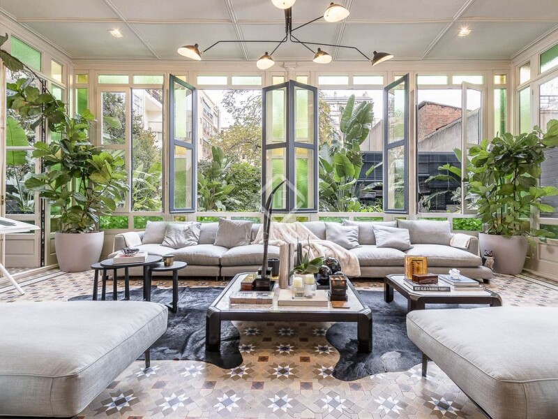 This exquisite luxury apartment, spanning a total of 465 m² with the terrace, occupies the entire mezzanine floor of a building dating back to 1905. Completely renovated by a well-known interior designer, it has retained the original elements that give it exceptional personality and uniqueness. The building has a concierge service, and is ideally located just a few blocks from the iconic Avinguda Diagonal. This property offers a combination of convenience, elegance, and style. Its beautiful terrace space makes it a unique property, an oasis of peace in the middle of the city. Meticulously renovated to the highest standards, this apartment showcases a sophisticated design with exceptional attention to detail. The use of high-end materials such as polished wood and luxurious marble is evident throughout, while the expansive layout ensures an abundance of space and a functional flow. Fully exterior-facing with dual aspect, the apartment enjoys exceptional natural light throughout the day, views of lush green spaces and historical landmarks. Upon entering the home, one is greeted by a grand entrance hall featuring striking original floors, setting the tone for the rest of the property. The living-dining room is a central gathering space, opening to a fully equipped kitchen, ideal for culinary enthusiasts. The apartment offers four well-appointed bedrooms, including a spacious main suite with an en suite bathroom featuring a luxurious jacuzzi, providing a private sanctuary and a large dressing room. The second bedroom is also generously sized and includes its own en-suite bathroom, as does the third bedroom, both with access to a beautifully decorated terrace. The fourth bedroom has a double height and is ideal for children, also with an en-suite bathroom. Additional exclusive features of this exceptional home include custom-fitted wardrobes with integrated LED lighting. With every detail thoughtfully designed and executed, this apartment is ready to move in and offers a perfect blend of modern design, comfort, and tranquillity in the heart of Barcelona. Please contact us for further information.