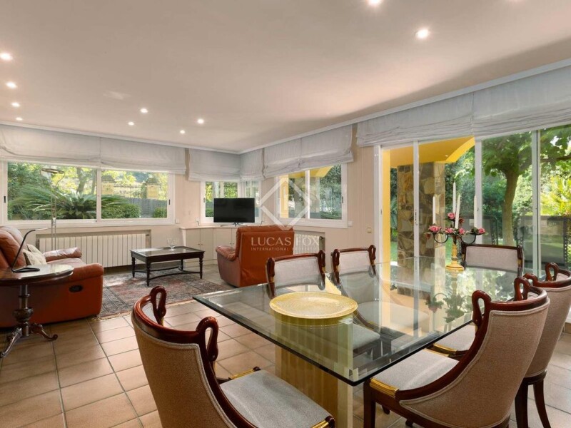 This impressive Mediterranean-style house is located in a central area of Teià, just a short walk from all amenities. Teià is a charming town located near the coast and Barcelona. In just 10 minutes you can reach the beach, and in 25 minutes you can reach Barcelona. The house has a constructed area of 370 m² and has five bedrooms. It sits on a flat plot and is divided into two independent plots. There is the possibility of acquiring the plot next door, of 691 m², which allows for the construction of an independent house. The house and garden are southerly aspect and very charming. Its layout is very comfortable. The ground floor, at garden level, has a spacious and bright entrance with double height ceilings, a living-dining room with access to a pleasant summer porch, a bedroom with its own private bathroom and a second bedroom currently used as an study. The kitchen has access to the garden and has a pantry. There is also a utility room and drying area on this floor. The upper floor offers three double bedrooms, one of them with a pleasant terrace and two complete bathrooms. On the lower ground floor there is a large garage with parking capacity for three cars and a storage room. The garden is well maintained and offers several seating areas and a vegetable garden area. Under the mature trees, you can enjoy pleasant shade in summer and plenty of privacy. The house was built with high quality materials and is in perfect condition. Please contact us to schedule a visit.