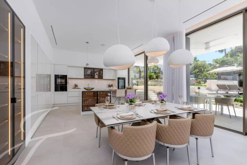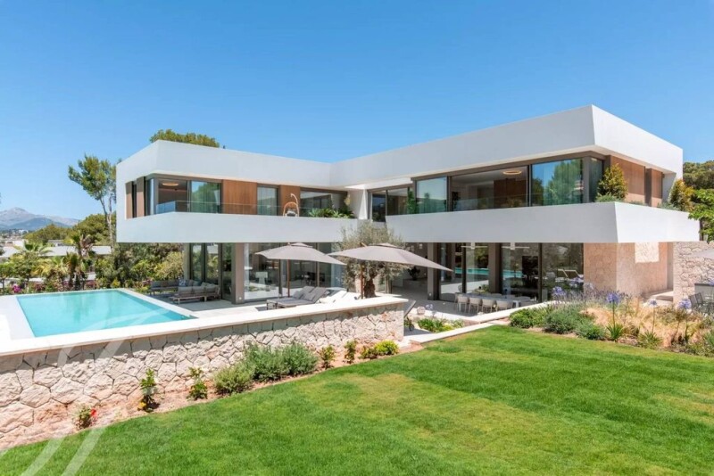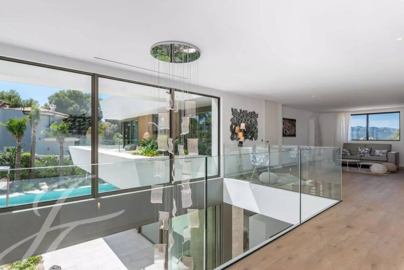 Extraordinary newly built villa in Nova Santa Ponsa! This modern gem stands out for its timeless design and local details. With a plot of 2.030 m² and 984 m² built on 3 levels, it offers an unrivalled living experience. From the impressive entrance, you enter a bright living room with fireplace and views of the pool and garden. The open plan kitchen with Miele appliances and a wine cellar is perfect for unforgettable dinners. There is also an outdoor kitchen ideal for barbecues. The upper floor houses a master suite with private balcony, dressing room, en-suite bathroom and outdoor shower, along with 4 further bedrooms with en-suite bathrooms. In the basement, you will find a fitness and spa area with Jacuzzi and sauna, home cinema, wine cellar and underground parking for 4 cars. The tropical-Mediterranean exterior features a 20 m saltwater pool, terrace, shaded areas and a 200 m² lawn. Enjoy the sun all day long in this perfect location. Contact us for more information! Nova Santa Ponsa, a real hidden treasure in the southwest of Mallorca. This privileged area is a haven for those seeking an elegant lifestyle in natural surroundings. In Nova Santa Ponsa, one is immediately captivated by the idyllic surroundings. The magnificent high-end villas rise majestically, offering panoramic views of the sea and the surrounding lush vegetation. The heart of Nova Santa Ponsa beats in its impressive marina, Port Adriano. Designed by renowned architect Philippe Starck, this world-class harbour is home to exclusive luxury yachts. The crystal-clear beaches invite you to relax, enjoy water sports or enjoy a cocktail in one of the elegant beach bars. Golf lovers will feel like in paradise in Nova Santa Ponsa, as it has some of the most prestigious golf courses on the island. Nova Santa Ponsa offers a wide range of quality services such as fine dining restaurants, exclusive boutiques, luxury spas and excellent sports facilities. It is also strategically located close to other areas of interest, such as the historic city of Palma, where you can enjoy a variety of cultural, shopping and entertainment activities.