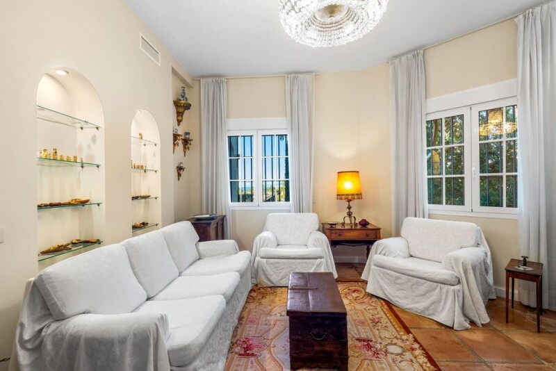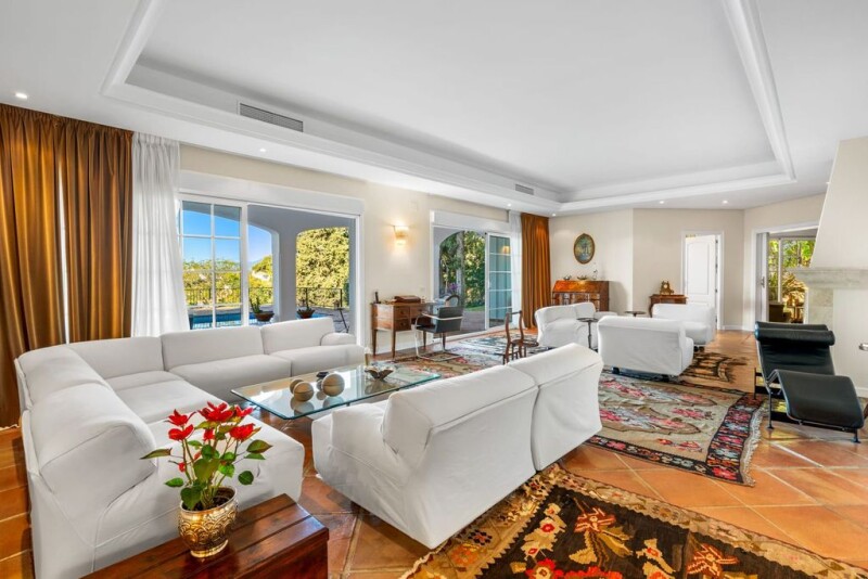 Stunning traditional villa with breathtaking sea views in gated community of El Rosario, Marbella East This stunning six-bedroom, seven-bathroom villa is nestled in the prestigious gated community of El Rosario, offering breathtaking sea and mountain views. Set on a spacious 2,595 m² plot, this 844 m² residence seamlessly blends timeless traditional charm with modern comforts, making it a perfect retreat in Marbella East. Designed for luxurious living, the southwest-facing villa ensures natural light throughout the day while capturing spectacular sunsets over the Bay of Marbella. The first floor houses five spacious en-suite bedrooms, each providing privacy and comfort. An additional guest bedroom is located on the lower level, offering flexibility for family or visitors. The main living area boasts a cozy real wood fireplace, seamlessly connecting to an outdoor barbecue and entertainment space, surrounded by lush greenery that ensures total privacy. An elevator conveniently connects all floors, while the spacious underground garage provides ample parking. High-end features include underfloor heating in bathrooms, air conditioning, electric shutters, a 3,000-liter fresh water tank, and a private well for garden irrigation. Located just 10 minutes from Marbella’s center and 30 minutes from Málaga Airport, this villa is moments away from renowned golf courses, international schools, restaurants, supermarkets, and the Royal Tennis Club. With beautiful beaches and exclusive beach clubs nearby, this home offers an unparalleled lifestyle in one of Marbella’s most sought-after residential areas.