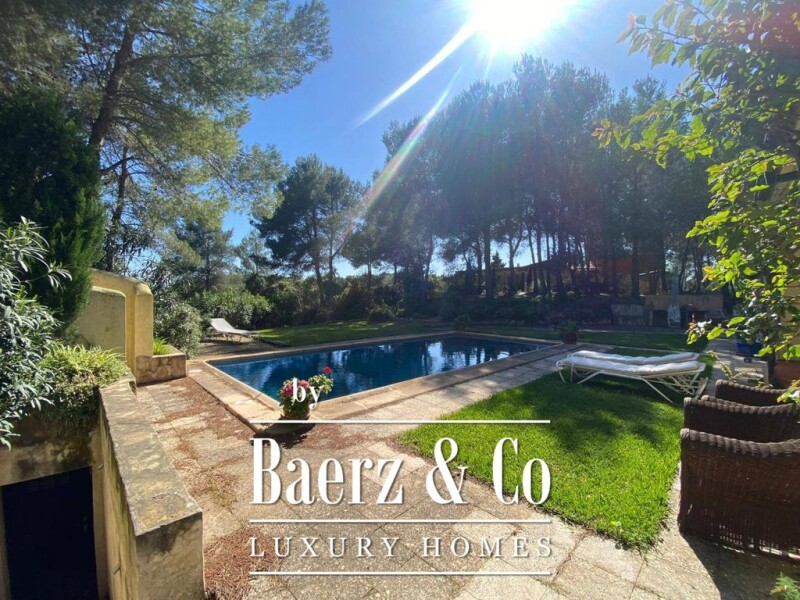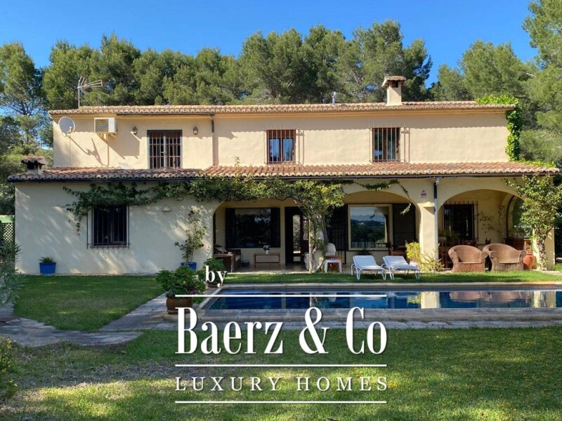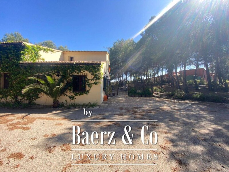 Country house for sale in Teulada rustic style of 330m2 on two floors, with a plot of 11,100 m2. On the ground floor you will find a spacious living room with views of the large garden and pool. Large outdoor terrace, large kitchen. Two spacious rooms. Two full bathrooms. Second floor has 3 bedrooms with two full bathrooms, a small office and a fully independent kitchen.