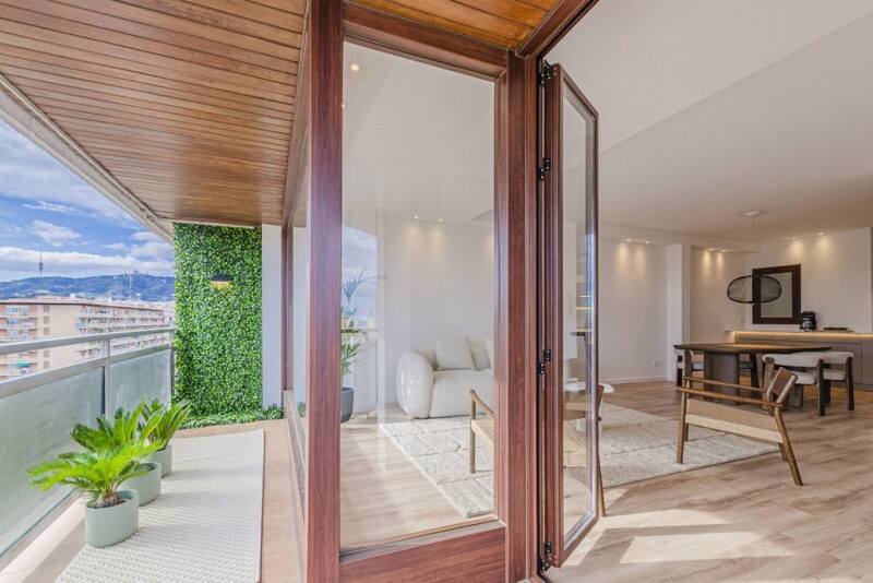 Exclusive Luxury Residence in Paseo Sant Joan with Panoramic Views. We present this unique property in Dreta de l'Eixample, one of the most exclusive neighborhoods in Barcelona. Located in Paseo Sant Joan, close to Passeig de Gràcia and Sagrada Familia, it offers a distinguished environment with boutiques, restaurants and green spaces. Design and comfort in 148 meters of which 131 are of the apartment and 17 of the terraces m². This luxury apartment on the 10th floor has been refurbished with high level finishes. Its contemporary design and large windows maximize natural light. The spacious living-dining room opens onto a spectacular corner terrace with panoramic views. The KVIK kitchen, with Bosch appliances and Silestone countertops, includes a central island ideal for gatherings. The private area has three bedrooms: a master suite with dressing room, luxury bathroom and private balcony overlooking the Sagrada Familia, a second suite with access to the terrace and a third single bedroom with privileged views. The three bathrooms stand out for their elegant design and high-end finishes. It also has a separate laundry area. The Mitsubishi air conditioning system with home automation control, electric blinds and double glazing guarantee comfort and privacy. The building, one of the tallest towers in the area, offers concierge service, two elevators and only two residences per floor. If you are looking for luxury, privacy and incomparable views in the heart of Barcelona, contact us for an exclusive visit.