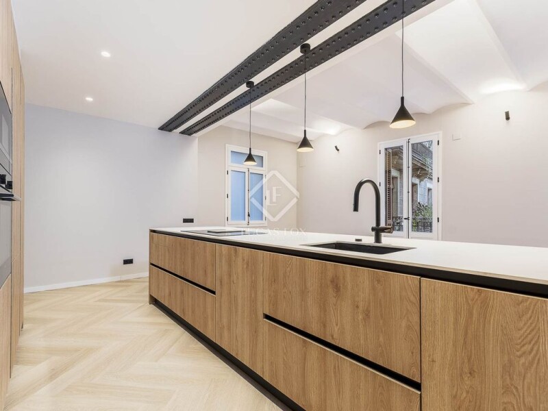 Lucas Fox presents an exclusive refurbished property located on a magnificent main street on the recently renovated Via Layetana, one of the most emblematic arteries of Barcelona. This street is destined to become a landmark in the Old City, as it has been transformed thanks to the reduction of traffic, the widening of sidewalks and the addition of green areas. In addition, it connects two of the most historic and charming neighborhoods in the city: the Born and the Gothic Quarter. For this reason, it is surrounded by iconic monuments such as the Barcelona Cathedral, the Palau de la Música and the city hall. The building, built in 1936, has an elegant lobby , concierge service, elevator and a large communal terrace, ideal for enjoying moments outdoors. In this unique setting we have this refurbished property with high quality finishes, designed to offer modern, bright and functional spaces that combine style and comfort. The property has three bedrooms and two complete bathrooms , one of them located inside the master bedroom. The dining room living room is connected to an open kitchen, a space of more than 55 m2 with access to a balcony overlooking the Plaça de les Beates. This square stands out for being a very quiet place in the heart of the Born neighbourhood . The property features herringbone laminate flooring, air conditioning via aerothermics and a kitchen equipped with Siemens appliances . All of this creates a sophisticated and practical environment for urban living. Please contact us for more information or to arrange a viewing of this exclusive property in the heart of Barcelona.