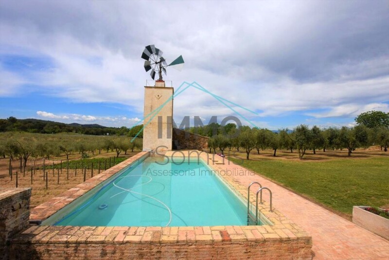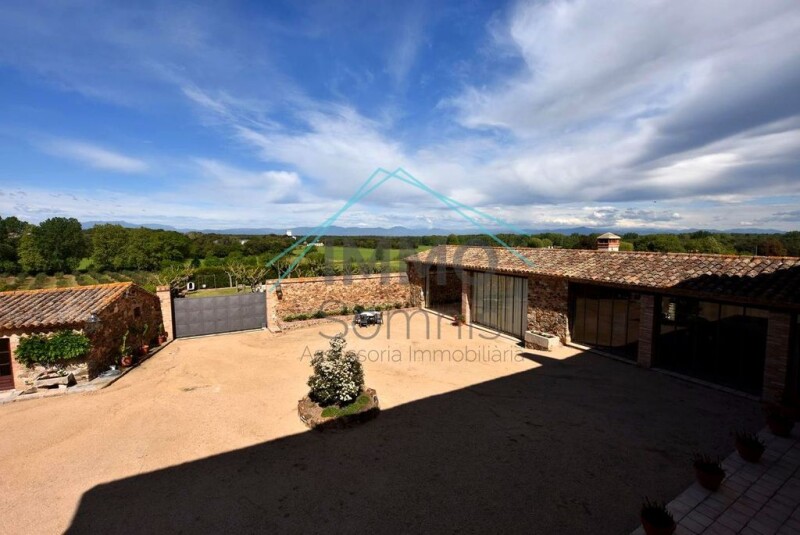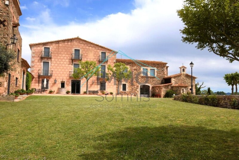 The property houses two fully restored farmhouses, retaining their original charm and equipped with all amenities. Just 25 minutes from Girona and a step away from the Costa Brava, the estate is strategically located to enjoy rural tranquility without giving up proximity to the main points of interest. This location is perfect for those dreaming of developing a boutique hotel, a rural complex, or simply enjoying a private residence in an environment of unparalleled natural beauty. Less than an hour from Barcelona and with the best beaches of the Costa Brava. Masía Peiral of 2,950 m2 with a total of 15 bedrooms, 9 bathrooms, and 2 toilets. It consists of 3 floors, several porches, and interior patios + tower with living quarters. Natural stone floors, white lacquered wooden doors, double glazing, propane heating, and several fireplaces in different rooms + caretaker's house with 4 rooms, 1 bathroom, and toilet. Well and built-in barbecue. The entire farmhouse has bars and an alarm system. Ground Floor: entrance hall-living room, office, dining room with fireplace, 3 suites (1 with dressing room and access to covered porch with summer kitchen, built-in barbecue, wine cellar, dining room…) and 1 toilet. Spacious Scandinavian-style kitchen-dining room with ceramic floors, 2 dining rooms with access to interior patio (1 with Catalan vault), 50 m2 interior patio with a small church where weddings used to take place… Access to outdoor garden areas. Laundry room with access to the exterior garden, and a 3-story rustic-style caretaker's house. First Floor: spacious library, storage room, large neoclassical "dance" living room, hallway, 10 rooms, 3 bathrooms, and several rooms with views of nature, outdoors, gardens… Second Floor: 1 bedroom between the first and second floor to be renovated with a living room and the possibility of another 6 rooms (currently used as storage). Adjacent to the farmhouse, there are several additional dependencies: One workshop type, another with a dining room with an old stone kitchen, wooden beams, and built-in barbecue, another with a covered porch for parking cars, and lastly, a 3-story tower with individual living quarters, separate heating, American kitchen with dining corner, cozy living room with fireplace, 2 bedrooms, and 2 bathrooms with access to an exterior garden with olive trees, vegetable garden, and private pool. Well and small house in the front garden where oil is stored and bottled. Inactive livestock exploitation area with a farm, warehouses, box… it consists of an area of 3,299 m2 with a 108 m2 caretaker's house within the perimeter. Swamp of 12,097 m2 surrounded by natural surroundings. Olive groves of 35 ha, woodland of 69 ha, and land of 32 ha. Ideal for investors in the agro-food production market, sub-sector of oil production as there is a building for it, operational staff and clientele… To resume livestock exploitation and rehabilitation of the farm or to create equestrian centers for horseback riding routes, rural tourism, hospitality business with rental of the farmhouse and church for wedding, baptism, and communion events… The possibilities are endless. Don't miss this unique opportunity! Come discover all that this farmhouse has to offer you. Contact us and start making your dreams come true. Immo Somnis, experts in Farmhouses on the Costa Brava. +34972091430 / +34635671946 info.