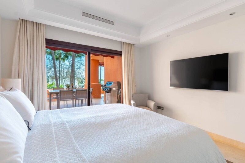 Stylish renovated Apartment – walking distance to Puerto Banús in La Alzambra, Nueva Andalucía Located in the prestigious gated community of La Alzambra, this newly renovated ground-floor apartment offers a blend of modern comfort, prime location, and resort-style living. With 192 m² of built space and an additional 42 m² terrace, this three-bedroom, two-bathroom home is just minutes from Puerto Banús, top golf courses, and Marbella’s finest amenities. Designed with a clean, contemporary aesthetic, the home features an open-plan layout with high-end finishes, floor-to-ceiling windows, and direct access to a spacious terrace overlooking the lush communal gardens. The sleek kitchen is fully equipped with top-tier appliances and connects seamlessly with the dining and living areas, creating a space perfect for entertaining or relaxing with family. The main suite offers a luxurious en-suite bathroom with walk-in shower, underfloor heating, and elegant fittings. Two additional bedrooms share a beautifully designed bathroom, ideal for guests or children. The apartment also includes underground parking, a private storage room, and access to exclusive community facilities such as a swimming pool, sauna, and fully equipped gym. With 24-hour security, manicured tropical gardens, and walking distance to shops, restaurants, and beaches, this property is ideal for year-round living, a holiday home, or investment in one of Marbella’s most desirable locations.