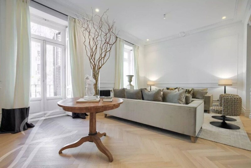 In a beautiful early 20th century building with a classic façade and in the heart Recoletos, we find this fabulous property that is currently being renovated and will be delivered in December fully furnished and brand new. It is located on the first floor facing west, and has three beautiful balconies overlooking the street. The social area is an open space with a living room, dining room, and fully equipped kitchen. In this area we also find a guest toilet. The private area includes four bedrooms, all with en-suite bathrooms, the smallest being one next to the kitchen that could be used for service. The master bedroom is very spacious, with a large dressing room and bathroom. The building has a doorman.