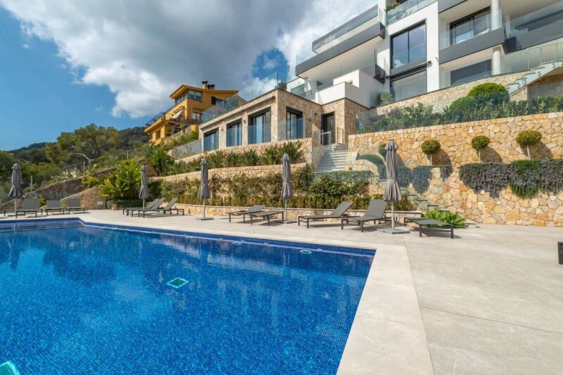 Spectacular duplex penthouse located in the upper part of Genova with incomparable views over the sea and the town of Palma from almost all rooms. The 470 sq.m property is set within a residential complex of 12 units that has been recently completed, offering the highest-quality finishes and comfort. It comprises a huge living room with American kitchen, 4 bedrooms and 3 bathrooms. Three bedrooms have access to a 230 sq.m terrace with tremendous sea views. The terrace also has a separate entrance from the staircase enabling visitors direct access. Other features include 2 parking spaces, a storage room and a wonderful communal swimming pool.