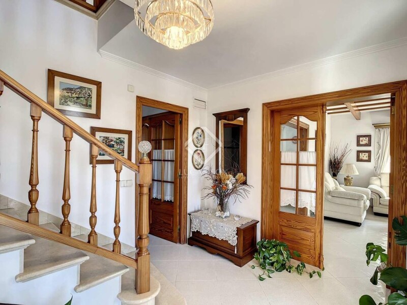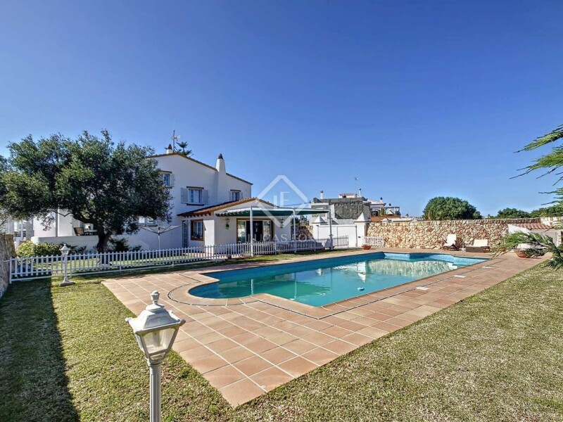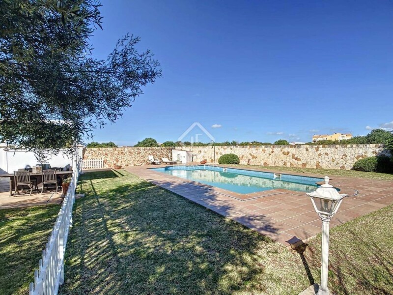 Spectacular 274 m² independent villa on a 930 m² plot in the prestigious Son Oleo development a few kilometers from the centre of Ciutadella de Menorca. The property is distributed over two comfortable floors. The ground floor welcomes us with an entrance hall that connects to the left with a small hall with a toilet. From here, we reach the kitchen with access to a terrace covered with a sliding canvas. From the kitchen, we access the dining room, also with access to the terrace, and then we find a spacious living room with a fireplace that connects with another fully glazed living room facing south. From the entrance and to the right, we can also access the living room. By a comfortable staircase, we reach the first half floor where we have a double bedroom with built-in wardrobes and a private bathroom, two double bedrooms also with built-in wardrobes and another bathroom. From this floor we reach another semi-floor with attic where there is a living room and a small office with a bookstore with access to a terrace. On the ground floor we also have a garage for three cars, a laundry room with a storage room and a room for a dining room with kitchen, barbecue grill and stone oven for family celebrations. From here, we have access to the terrace covered with a sliding canvas awning that gives access to the 54 m² pool and the spacious garden. The Menorcan-style house was built with quality materials, it has exposed wooden beams on the ceilings, heating and ducted air conditioning, double insulation on the walls and aluminum exterior carpentry with double glazing. Without any doubt, an ideal property to settle down to live comfortably all year round in Menorca, since it is also just over a kilometer away from the historic center of Ciutadella. Contact us for more information or to coordinate a visit.