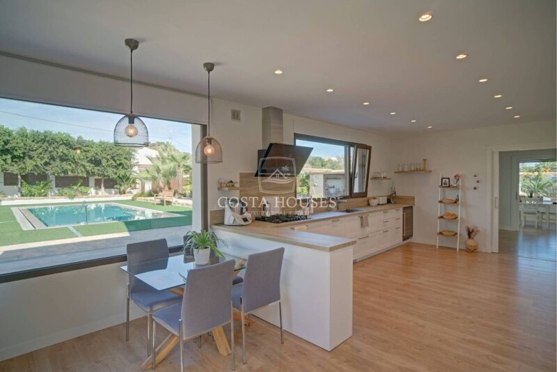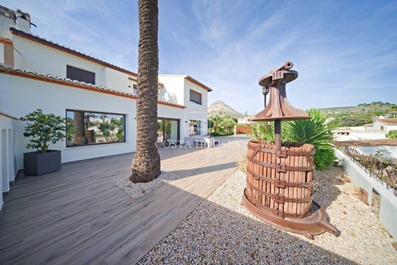 VILLA VALLEY | For sale Sensational Villa just a step away from the historic center of Javea, Alicante~~COSTA HOUSES Luxury Villas S.L ®, your trusted agency in Javea, is pleased to present this exceptional villa of contemporary design, an architectural jewel that offers views of the valley, Mount Montgo and the Mediterranean Sea. Located within walking distance of Javea's charming Old Town, this property is a sanctuary of luxury and comfort.~~The villa sits on a large 1,672m2 plot, guaranteeing absolute privacy. Designed with an intelligent and functional layout, the property extends over two levels. The Main Floor houses a spacious hall, a living-dining room with impressive double-height ceilings and views of the garden, a state-of-the-art independent kitchen with direct access to the barbecue area, and a bedroom with an en-suite bathroom.~~Going up some designer stairs, we find the First Floor, where the master bedroom is located with a dream dressing room and en-suite bathroom, as well as two additional bedrooms with a shared bathroom and a terrace from where you can admire the spectacular views of the sea. .~~The exterior is a true oasis, with multiple spaces to enjoy the idyllic climate of Javea. Highlights include the barbecue area with a large terrace and a summer kitchen with a closed dining room, perfect for social events. The swimming pool with hydromassage area invites you to relax in the sun, complemented by an outdoor shower and toilet.~~Brightness is the protagonist thanks to the large windows, which together with the high-end materials and the modern-Mediterranean style, create an atmosphere of timeless elegance. Amenities include underfloor heating, central air conditioning, advanced home automation system, water tank, double garage and additional parking space.~~This villa is not just a house, it is the epitome of the Mediterranean lifestyle, a unique opportunity for those seeking exclusivity and comfort in one of the most sought-after enclaves on the Costa Blanca.