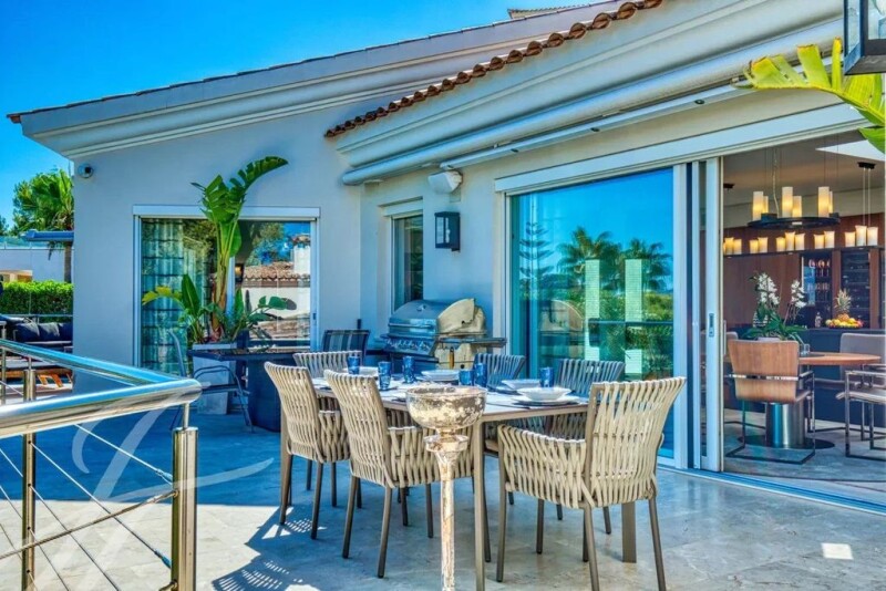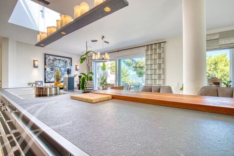 This attractive family villa with sea views was renovated in early 2017 to the latest construction standards with high-quality materials. It is located in one of the best exclusive residential areas, in La Ensaimada. On the entrance level is a large living-dining room with an open-planned luxury kitchen of the brand Leicht with Gaggenau and Miele appliances, adjacent to a pantry and a second kitchen. From the living room, there is access to the ground floor to the large terrace with sea views and the heated swimming pool. Furthermore, on this level, there is a master bedroom with an en suite bathroom and dressing room, a storage room as well as a study and a guest toilet. The lower floor offers 2 further double bedrooms with bathrooms en suite, another bathroom, and a gym with a sauna which can be converted into a fourth bedroom, as well as a 38 m2 garage accessible from the house. Further features are air conditioning h/c, underfloor heating with heat pump, aluminum double-glazed windows, shutters, computer-controlled house system, alarm, and intercom system, osmosis system, decalcification system as well as the Internet. Nova Santa Ponsa, a real hidden treasure in the southwest of Mallorca. This privileged area is a haven for those seeking an elegant lifestyle in natural surroundings. In Nova Santa Ponsa, one is immediately captivated by the idyllic surroundings. The magnificent high-end villas rise majestically, offering panoramic views of the sea and the surrounding lush vegetation. The heart of Nova Santa Ponsa beats in its impressive marina, Port Adriano. Designed by renowned architect Philippe Starck, this world-class harbour is home to exclusive luxury yachts. The crystal-clear beaches invite you to relax, enjoy water sports or enjoy a cocktail in one of the elegant beach bars. Golf lovers will feel like in paradise in Nova Santa Ponsa, as it has some of the most prestigious golf courses on the island. Nova Santa Ponsa offers a wide range of quality services such as fine dining restaurants, exclusive boutiques, luxury spas and excellent sports facilities. It is also strategically located close to other areas of interest, such as the historic city of Palma, where you can enjoy a variety of cultural, shopping and entertainment activities.