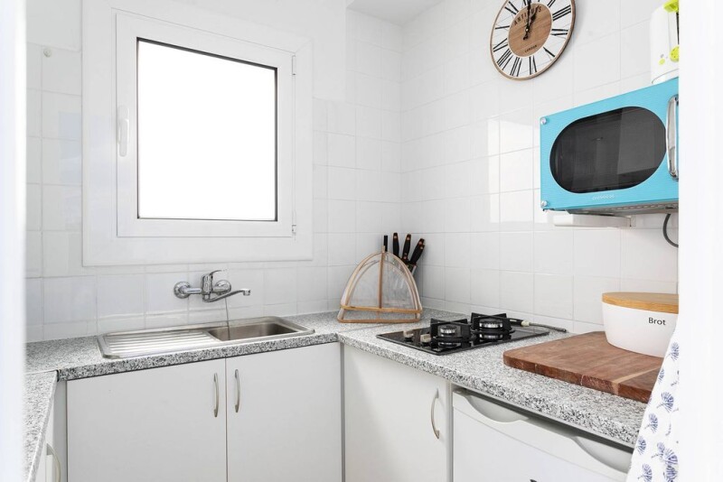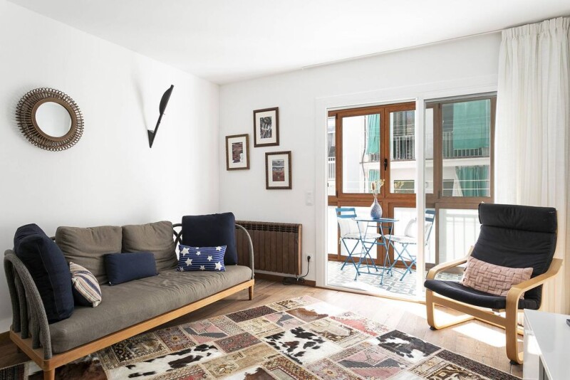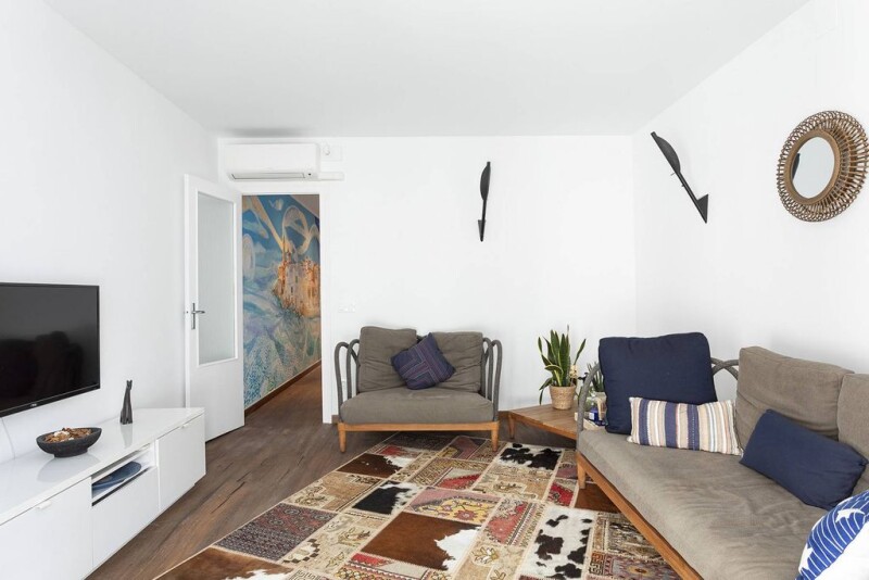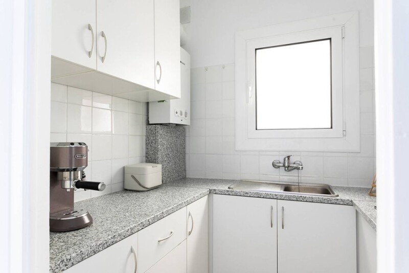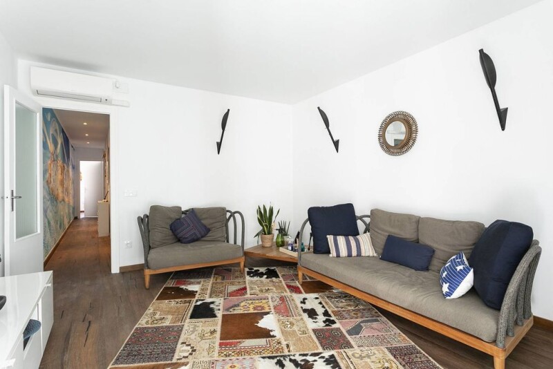 This stunning, recently fully renovated apartment is located on the third floor of a small apartment building in the centre of town, just behind San Sebastian beach. The interior is light and airy with contemporary designer furniture and fittings, all of which are included in the sale, enabling the new owner to move in immediately. We enter the apartment from the central staircase (please bear in mind there is no lift) which opens up to the hallway. On the left we find the modern bathroom with a large walk-in shower and to the right the open kitchen and a large double bedroom. The small kitchen is fully equipped. The living area is bright and light and by closing off the original terrace, it offers an extra sunny space to enjoy all year long. On the other side of the apartment, there is a single bedroom with a bunkbed, a storage space and a airy terrace of about 11m2, which offers even a lateral glimp of the sea. As a unique feature the current owner had a local artist to create a beautiful wallpainting presenting the promenade of Sant Sebastian beach, which occupies the total wall of the hallway. This delightful and stylish bijoux apartment would make a perfect pied-de-terre in which to comfortably enjoy all that Sitges has to offer right on your doorstep, or suitable for a couple to enjoy Sitges all year round. Property only available with Sotheby´s International Realty.