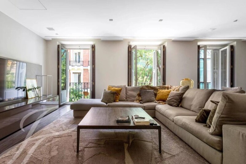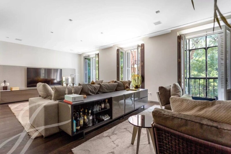 In the heart of the Jerónimos neighborhood we find this elegant apartment designed by the prestigious Pascua Ortega and the Minotti house, with an unbeatable location next to the Retiro Park, the Prado Museum, the church of the Jerónimos and the Botanical Garden. In a quiet street in the most monumental area of Madrid is located this property on the third floor of a classic building from 1915. A luxury reform with the best qualities of the market. The apartment has an open social space with living area with two balconies and a viewpoint to the street, a large dining room, guest toilet, and a modern Gaggenau kitchen fully equipped with the best appliances. The private area consists of a large master bedroom with dressing room and en-suite bathroom, with a bathtub/jacuzzi in front of the TV and a hammam for maximum comfort of the owners. This area also has a second bedroom with en suite bathroom perfect for guests. The apartment has air conditioning hot/cold in all rooms and underfloor heating, as well as a wood burning fireplace in the living room and a gas fireplace in the master bedroom. Building of the early twentieth century with concierge service.