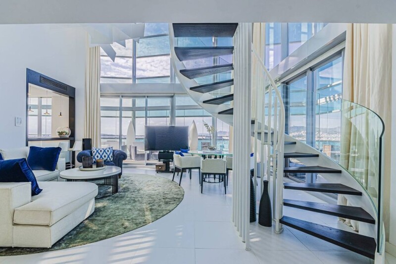 In the emblematic building "Illa del Mar" in Diagonal Mar, this incredible duplex penthouse located on the 21st floor offers breathtaking views of the city and the sea. It stands out for its large terrace of 56 m² that surrounds the apartment and includes a private pool. The apartment is distributed on two levels. On the main level, there is a bright living-dining room with high ceilings and a semi-open kitchen that has a modern style. This space opens to the outside, offering excellent views of the sea and the city, giving you a real sense of living in Barcelona. This level also has a double bedroom with its own bathroom, perfect for guests. Upstairs, there is an open space ideal as a home office or reading area, with stunning views. There is also a laundry area and the large master bedroom, which has its own spacious en-suite bathroom. This property is perfect for people who want to live in a luxury, well-designed space in the most exclusive area of Diagonal Mar, enjoying amazing views. The building also offers 24-hour security, a large common area with outdoor swimming pool, gym, paddle tennis court and children's playground. For those seeking privacy, exclusivity and a high quality of life, this apartment offers everything you need in a beachfront home in Barcelona.