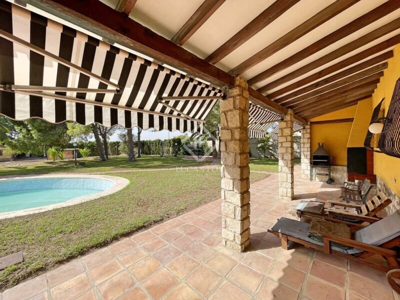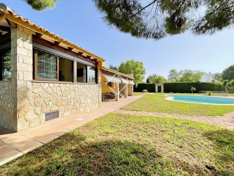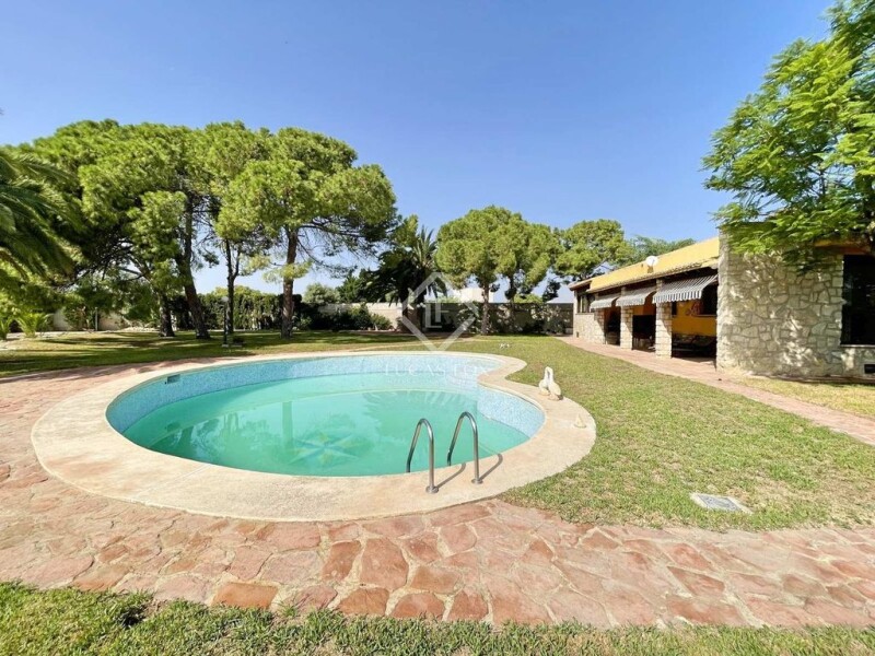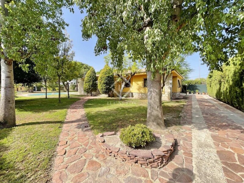 This house is located in a quiet urbanization of Almajada in Mutxamel, in a privileged location between the centers of Mutxamel, San Juan de Alicante and Alicante. This area enjoys great tranquility as it is in a natural environment, but with all the advantages of the city just 5 minutes away by car, with unbeatable connections that allow you to quickly reach the city of Alicante. In the urban area of Alicante, you will have services at your fingertips, such as supermarkets (Mercadona, Consum, Aldi), schools, restaurants and shops, among others. As for the beautiful beach of San Juan, it is only 10 minutes away by car. The house enjoys a large plot of 2,283 m², with a perfectly maintained garden with palm and pine trees. In addition, it offers the option of acquiring an additional adjoining plot of about 1,000 m² (price to be agreed with the buyer). In this way, you could enjoy a space of almost 3,500 m², which could be very interesting as an investment, since this additional urban plot has industrial use. The plot is perfectly used with several paths that give it a lot of charm, as well as a large swimming pool in very good condition. It also has a covered parking area for two cars. Upon entering the house, we find a spacious living-dining room with a fireplace and access to a glazed porch with stunning views of the garden. From the living room, we can enter a large kitchen with access to a terrace and a beautiful glazed dining room with high ceilings and exposed beams. In the night area, we have five bedrooms with their built-in wardrobes, including the master bedroom with its private bathroom, plus another additional bathroom. To finish, the house also offers a semi-basement floor that can be used to set up another large bedroom, or a Jacuzzi/sauna/gym area, since this room has two full bathrooms. As for its characteristics, it has a beautiful rustic style with exposed beams, woodwork, fireplace and beautiful porches with beautiful views of the garden. It also offers everything you need to live comfortably all year round, such as radiator heating in each room, ducted air conditioning and double-glazed windows. If you are looking to live in an area with great privacy, surrounded by trees, but in a house with its own character, contact us to arrange a visit to this house.