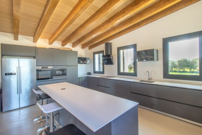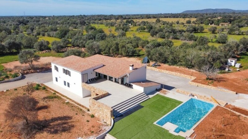 This luxury property in the south-east of Mallorca, located in the countryside in the municipality of Campos, is a new build with many extras and top construction materials. The finca offers 495 m2 of space for 5 bedrooms, 4 bathrooms, open and bright living room and dining area, an open modern kitchen, an indoor swimming pool (heated for the winter time). The master bedroom has a bathroom en suite and a large walk-in dressing room, and an exit to the terrace. The whole house has underfloor heating, double glazed windows and generally good insulation. Outside (the property has a total area of 23,700 m2, which ensures good privacy) there are several terraces, a covered terrace/porch and a large swimming pool with Jacuzzi. For further information please contact us!.